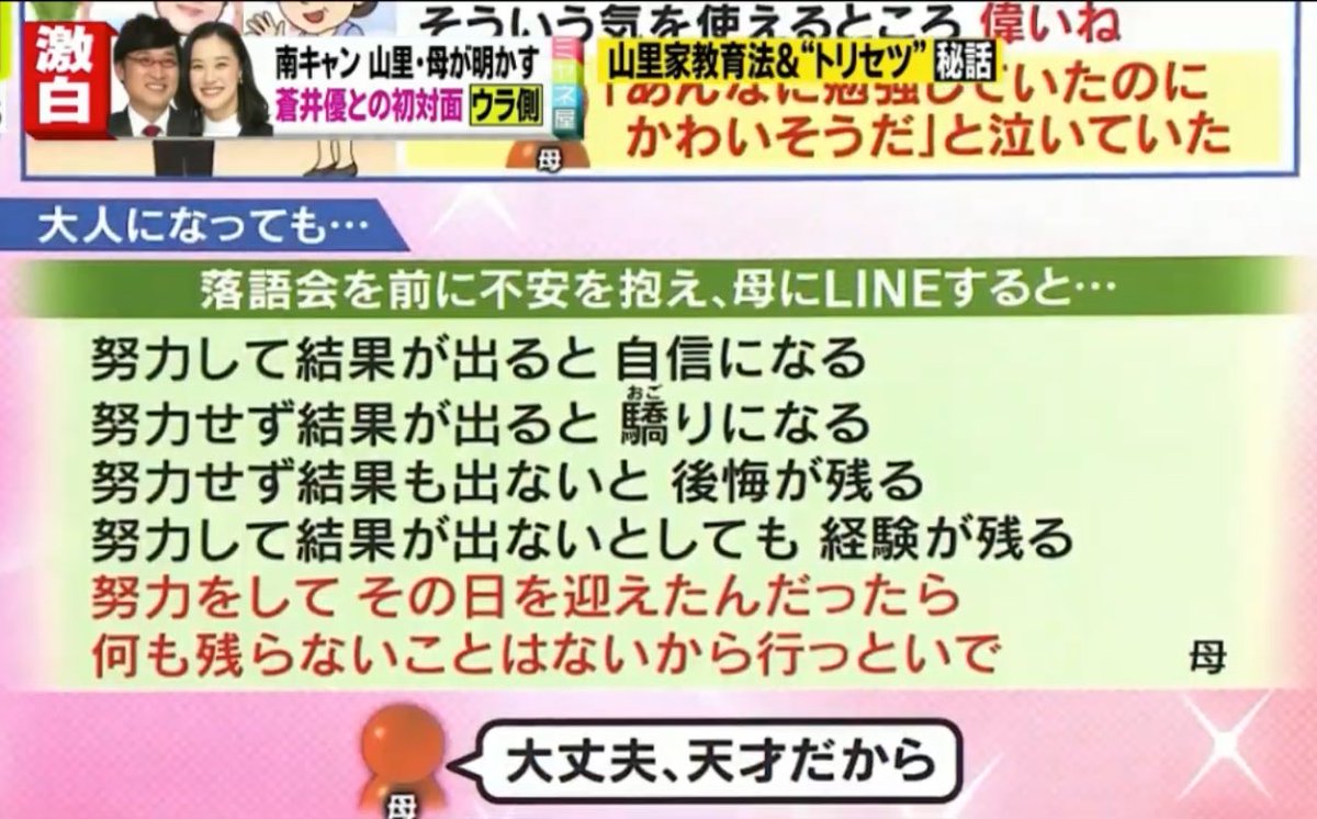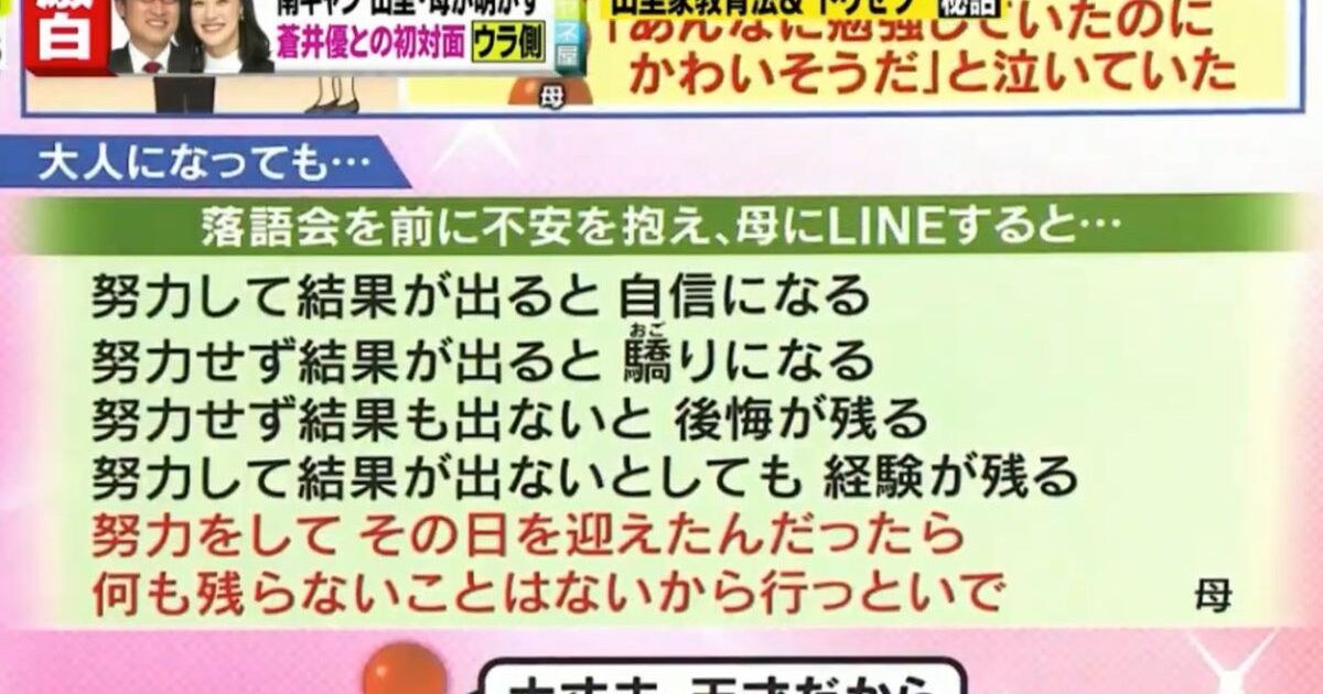 努力をして迎えたなら 山里亮太が母親からのlineに感動 ライブドアニュース