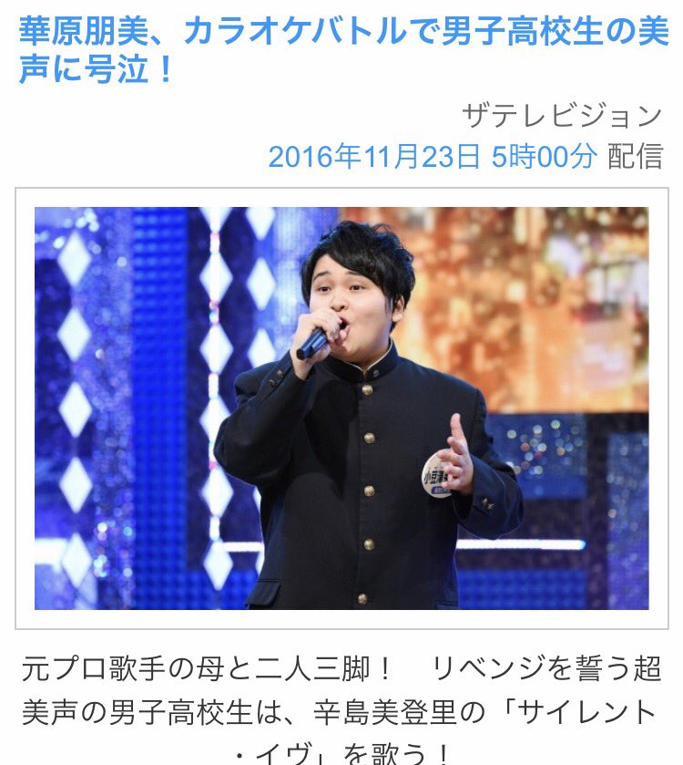 小豆澤英輝 あずきざわあいき On Twitter いよいよ本日 夜6時55分 Theカラオケ バトル U 18歌うま大甲子園 2016年王座決定戦 4時間sp トップバッターaブロック1番 サイレント イヴ を歌わせて頂きます ネットニュースにも記事が載っていましたれ