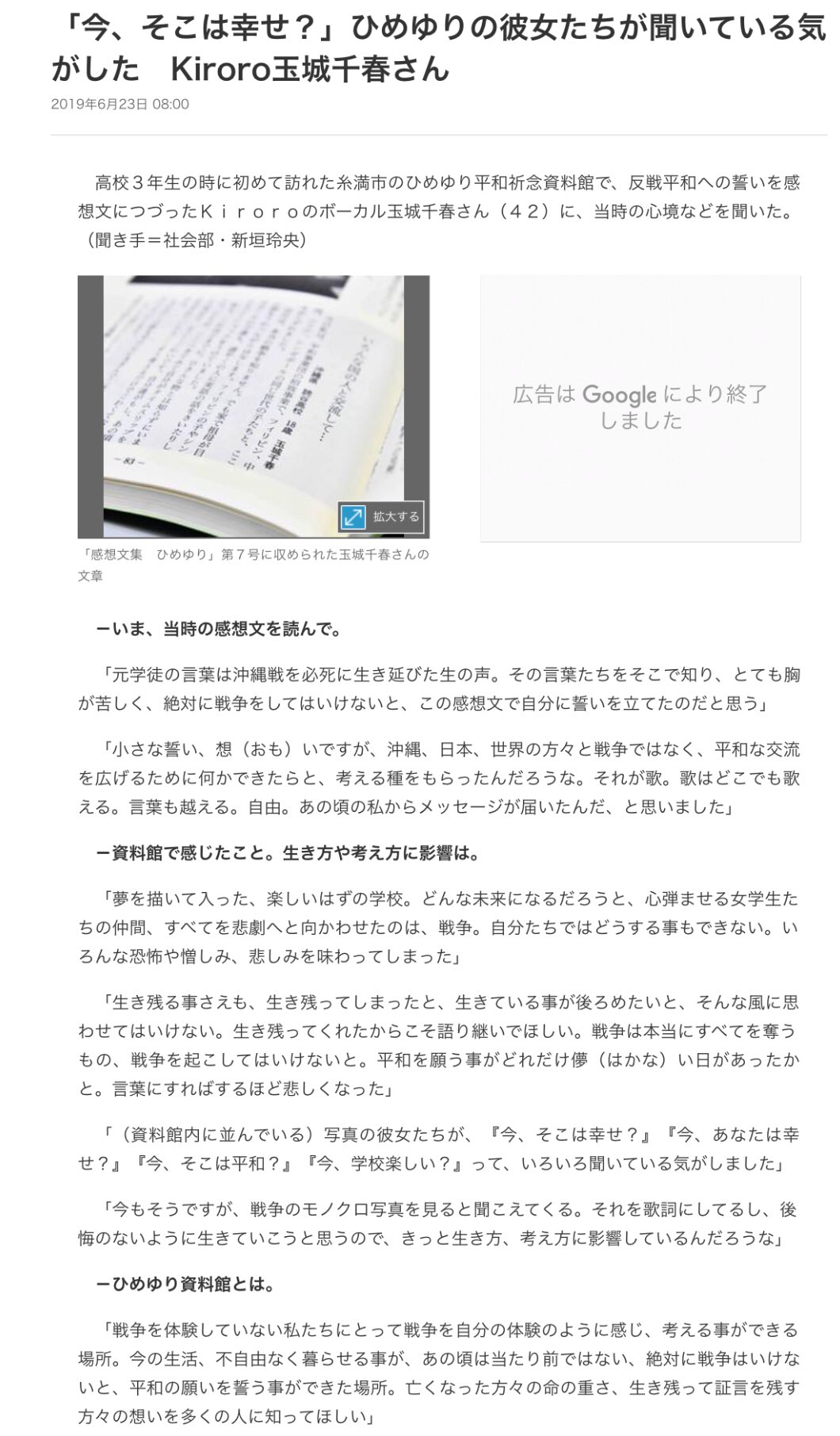Tarama Taruhei On Twitter 1945年の沖縄 沖縄戦を語り継ぐ 今 そこは幸せ ひめゆりの彼女たちが聞いている気がした Kiroro玉城千春さん 6 23 2019 沖縄タイムス Https T Co Ggzzhdwuvr Kiroro Music Ww2 Battleofokinawa 沖縄戦 日本軍の加害