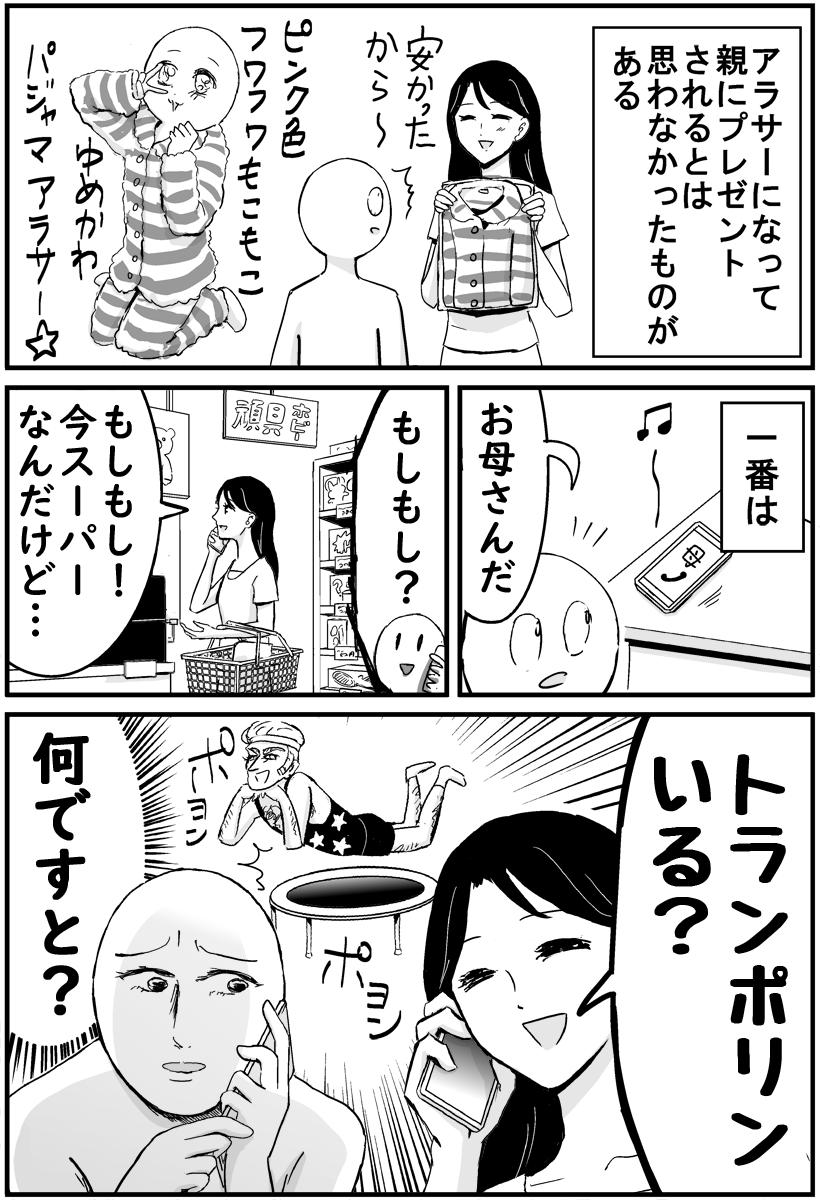 母 トランポリンいる アラサーの私に年相応でないものを買ってくるという漫画の話から うちにも1ポリンある という体験談が集まる Togetter
